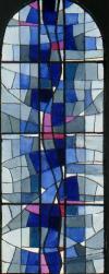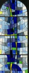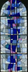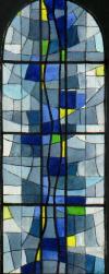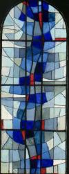 Les vitraux sud, côté droit de la chapelle, reproduisent la même progression dans les coloris. Seules les formes des vitraux changent.